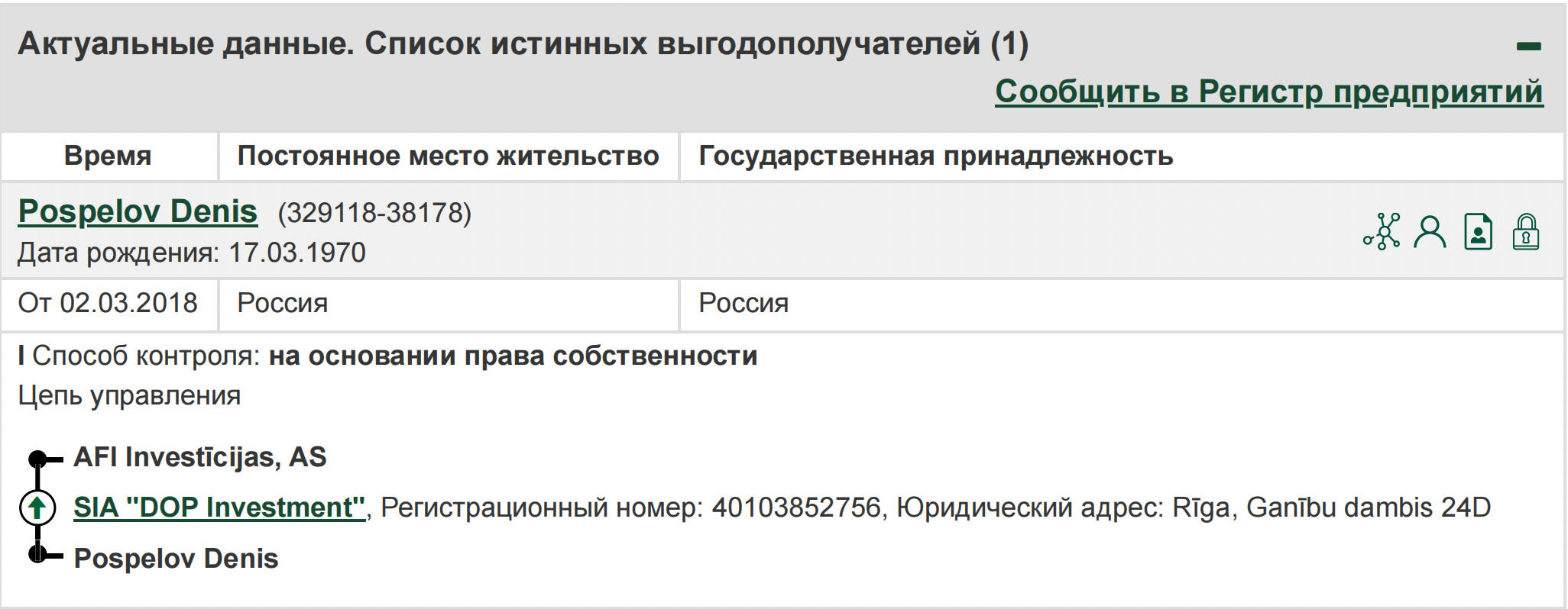 Но дом не единственный актив Ротенбергов в стране. На «эмиссара» Ротенбергов в Латвии Дениса Поспелова записана компания AFI Investīcijas, которая торгует облигациями на международных рынках.