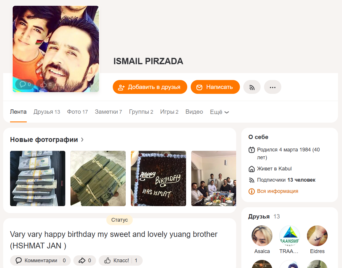 Двое из членов ячейки Зафара — Хамед и Наджибулла Мохибзада, чьи сканы паспортов и приглашения на получение виз были обнаружены The Insider в электронной почте Архипова, — управляли собственной курьерской сетью «друзей и семьи» в Кабуле. Во время одной из своих поездок в Афганистан они посетили день рождения с некоторыми членами своей ячейки, как видно из поста в социальных сетях одного из них, где они пьют кока-колу.