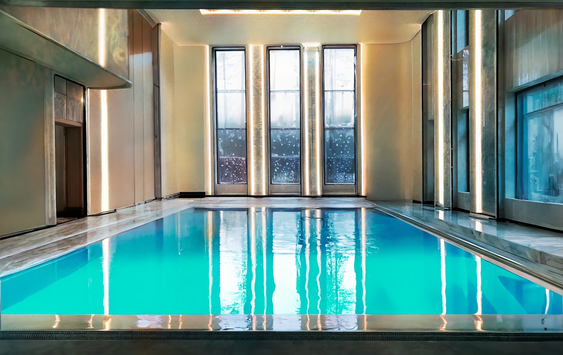 Отдельно оборудован огромный спа-центр с 20-метровым бассейном, джакузи, сауной, хаммамом и купелью. Там же находятся бильярдная и помещение под названием «альпийская комната». Есть в доме и отдельный служебный вход для персонала и разгрузки.