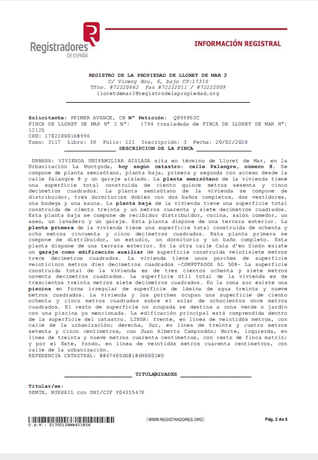 И именно в Испании The Insider нашел у Демина сразу четыре объекта собственности: пентхаус в Барселоне, дом в городе Бланес недалеко от Жироны, квартиру и виллу с бассейном в том же регионе, в Льорет-де-Мар.
