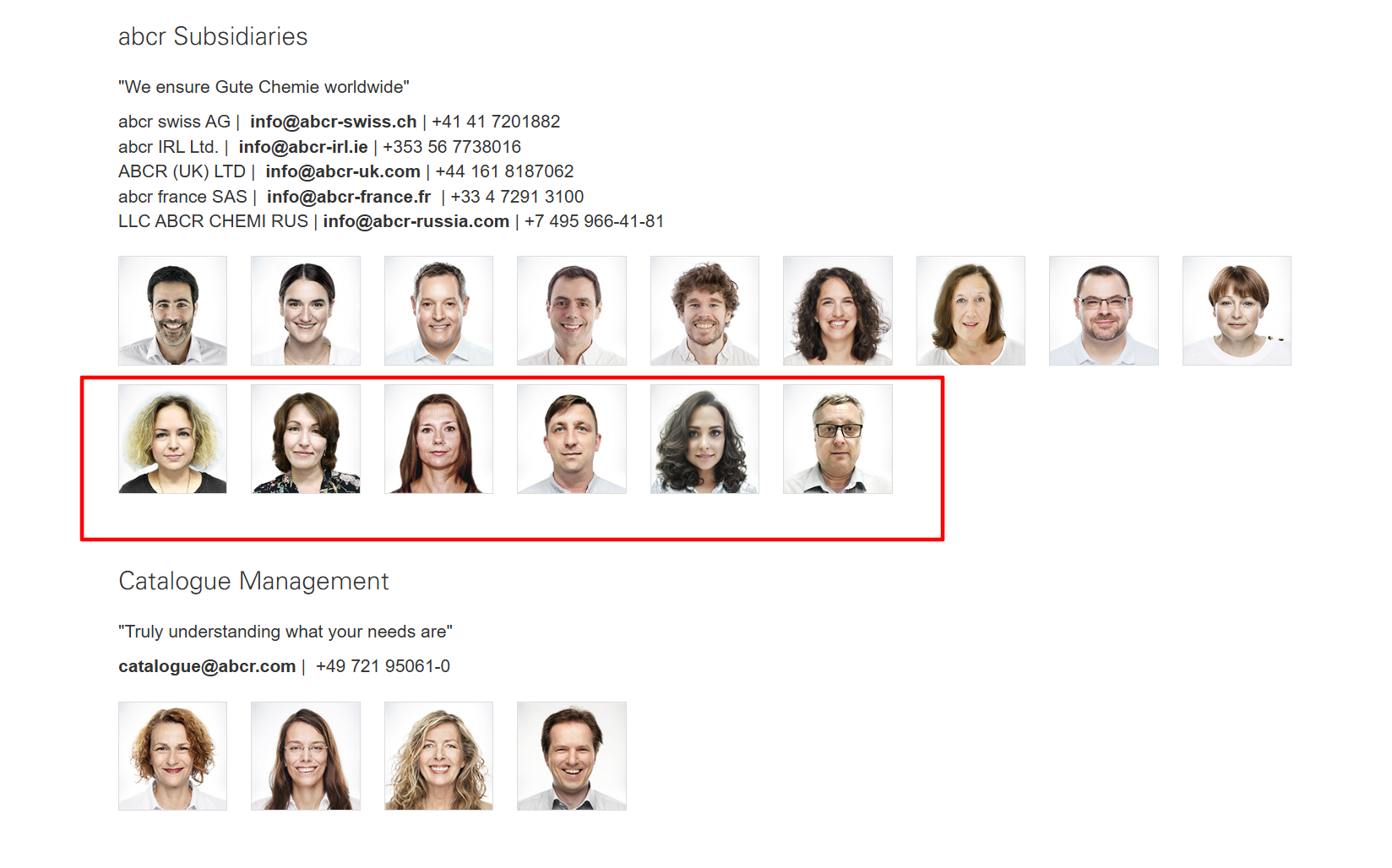 Вплоть до 17 марта на сайте немецкой компании можно было увидеть указание на то, что к ее команде относится российское подразделение, там размещались фотографии сотрудников российской ООО «АБЦР Хеми Рус». После запроса и звонка The Insider в Германию сайт внезапно перестал работать на некоторое время, а через несколько дней с него исчезли упоминания о российских сотрудниках.