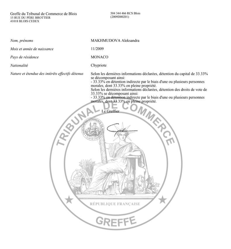 The Insider обратил внимание, что партнером Махмудова-младшего по Les Tesnieres Property SCI является некогда известная модель Александра Сергиенко.