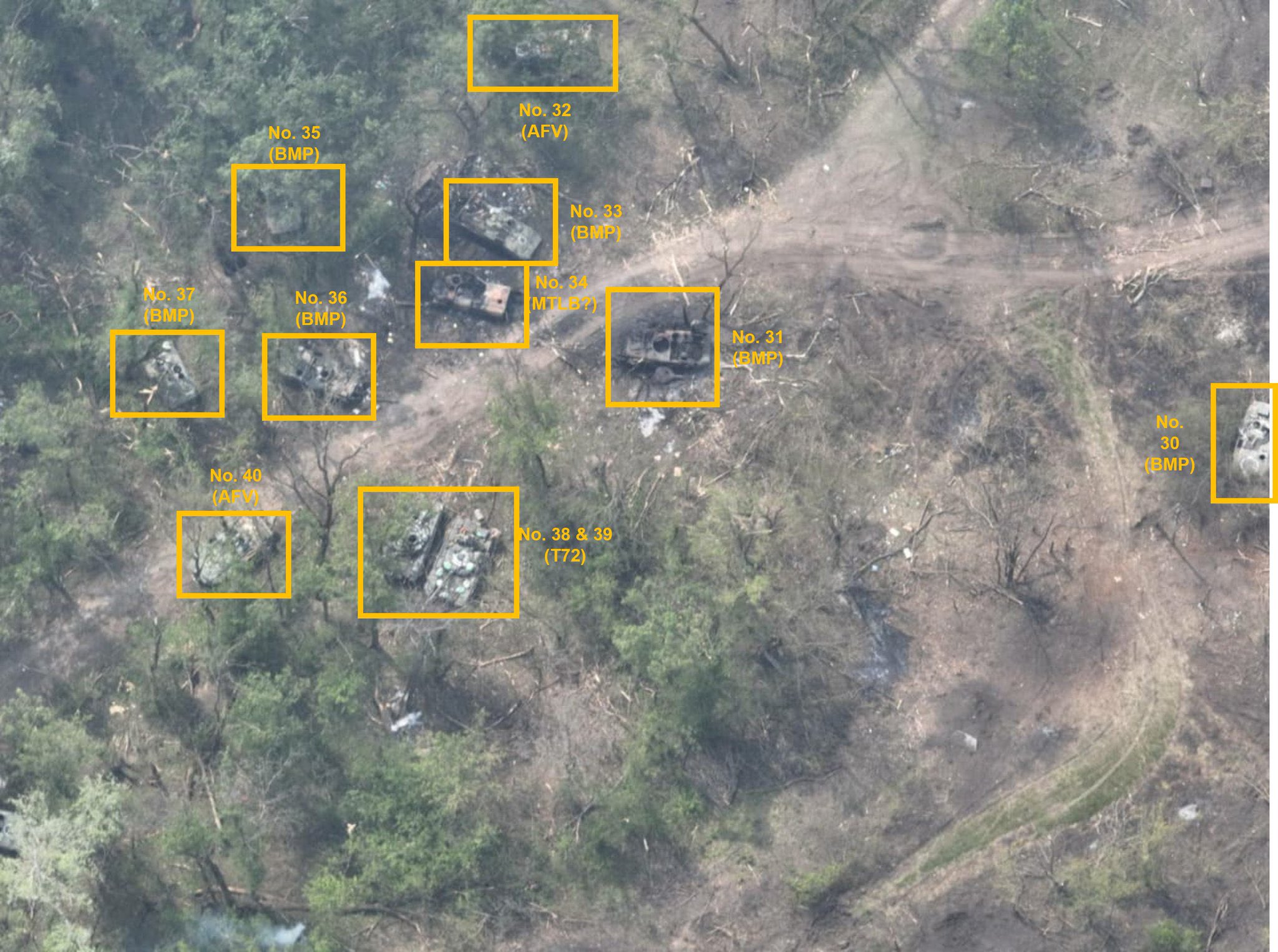 За четыре дня Россия потеряла или бросила 73 единицы военной техники в результате неудачной переправы через реку Северский Донец в районе Белогоровки. Это выяснил расследователь BlueSauron, занимающийся освещением военных конфликтов на основе открытых данных.