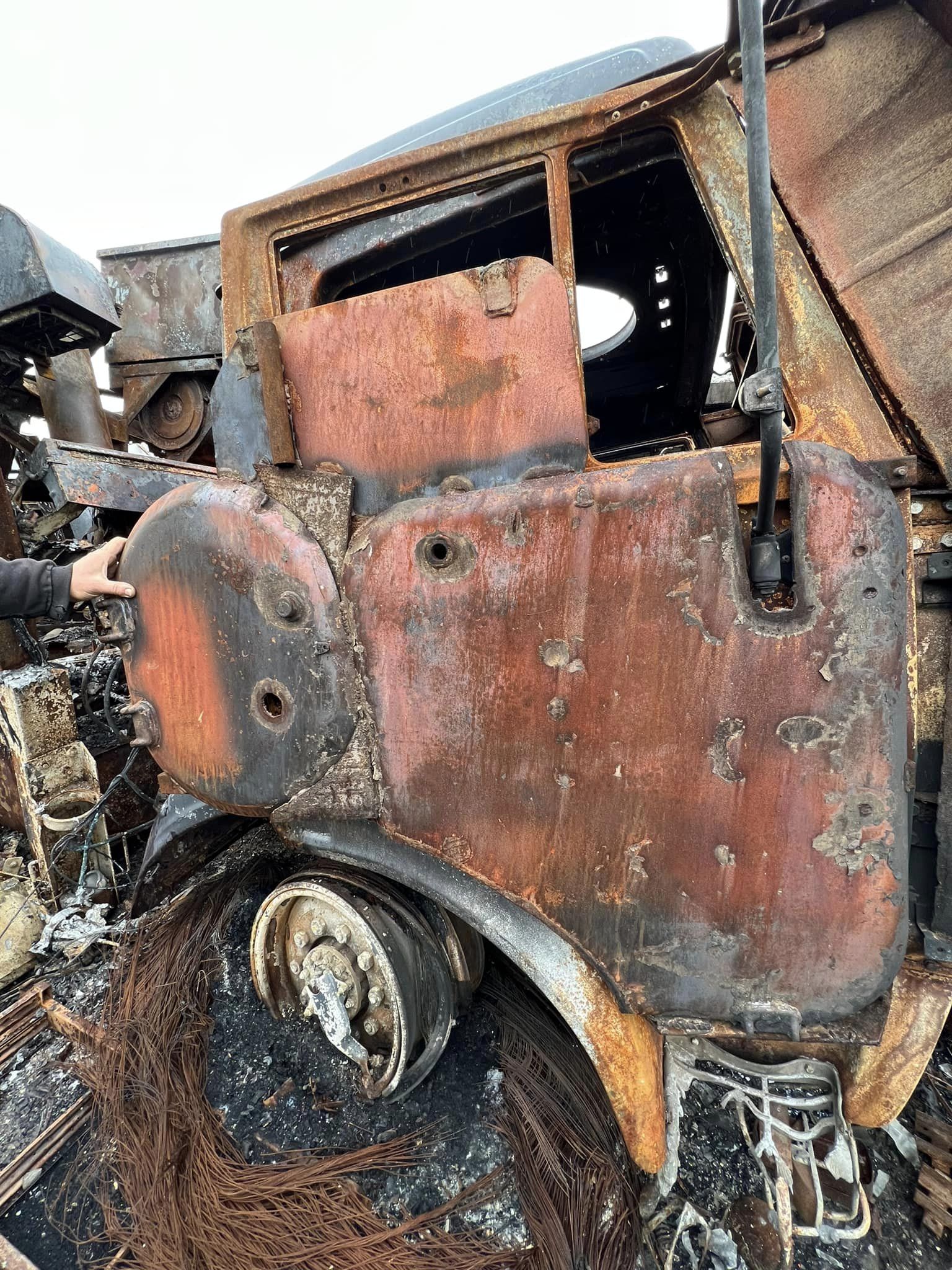 Публикуются фотографии любопытной модели уничтоженного «Камаза» ВС РФ. На него в качестве брони были приварены части МТ-ЛБ.