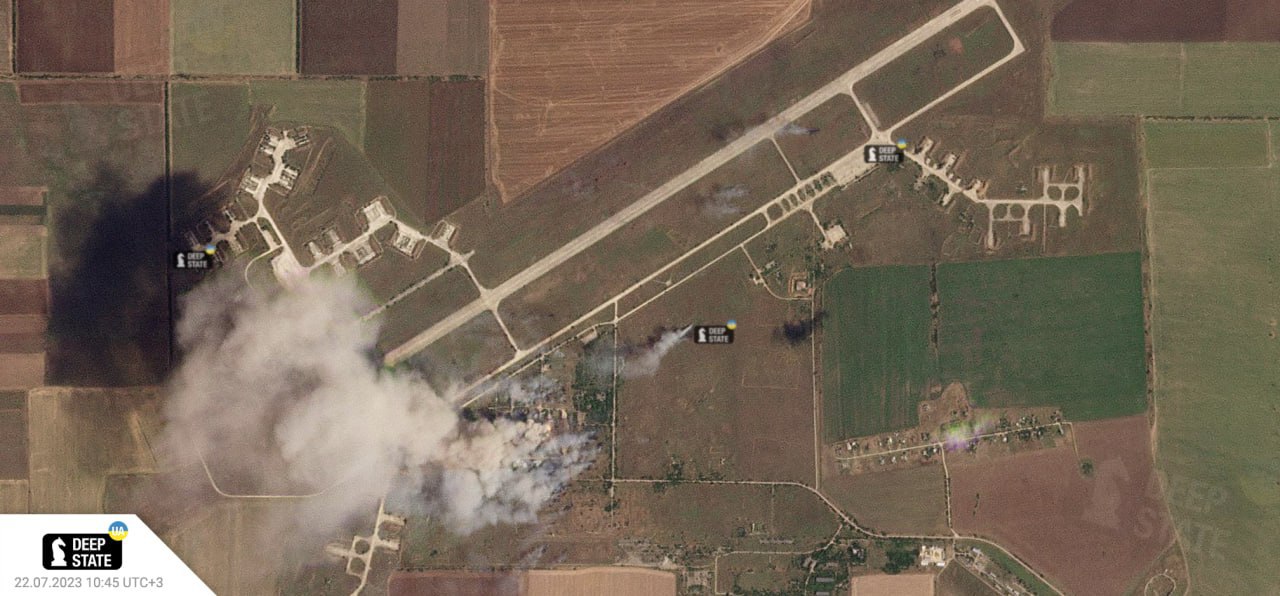 Утром 22 июля тот же Аксёнов сообщил о «попытке налета с использованием БПЛА по инфраструктурным объектам Красногвардейского района». Позже он уточнил, что произошла «детонация на складе боеприпасов» и объявил эвакуацию населения в радиусе 5 км от места инцидента.