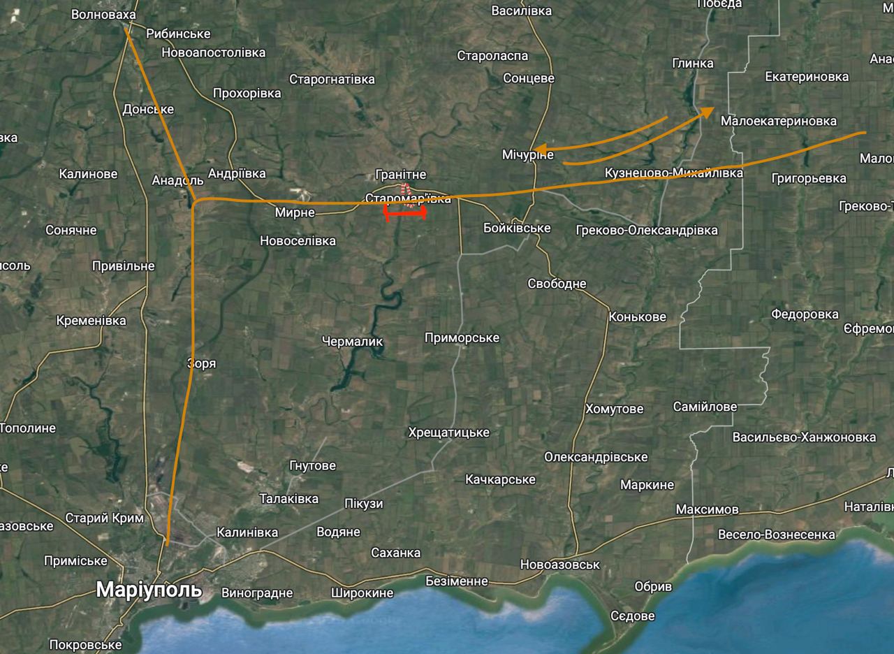 Советник украинского мэра Мариуполя Пётр Андрющенко отмечает, что также началось сооружение железнодорожного моста возле села Гранитное через реку Кальмиус. Если строительство будет закончено, существующая ветка Мариуполь — Волноваха будет напрямую связана с Таганрогом и Ростовом-на-Дону. На практике это означает не только глобальное решение вопроса военной и гражданской логистики, но и кардинальное снижение зависимости от железнодорожного сообщения через Крымский мост.