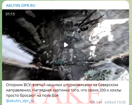 В предыдущей сводке мы писали о видео со сдачей 17 военнослужащих ВСУ — опорного пункта в полном составе. Украинский исследователь, пишущий в соцсети X (бывший Twitter) под ником Necro Mancer, усомнился в его подлинности, в частности, поскольку по непонятным причинам у всех показанных в кадре людей размыты лица.