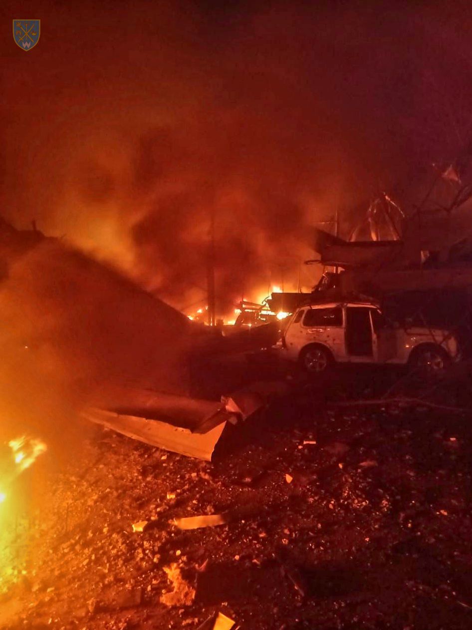 В Одесской области один из сбитых «Шахедов» упал на территории коммунального авторемонтного предприятия. Возникший пожар потушен, легко ранены два человека, повреждены 11 гражданских автомобилей. Обломки другого дрона-камикадзе повредили одно из портовых зданий.