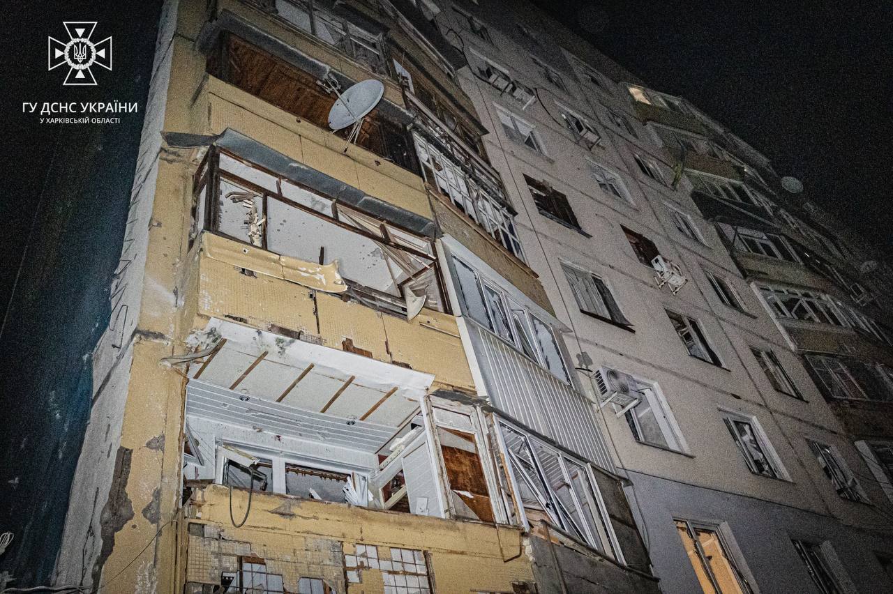 В результате атаки беспилотниками по жилым кварталам Харькова, по данным ГСЧС, произошло несколько пожаров: горели крыша частного жилого дома, гаражи, два легковых автомобиля, крыша двухэтажного административного здания. Кроме того, повреждены расположенные рядом многоэтажные жилые дома и торговое заведение. По предварительным данным, три человека получили травмы.
