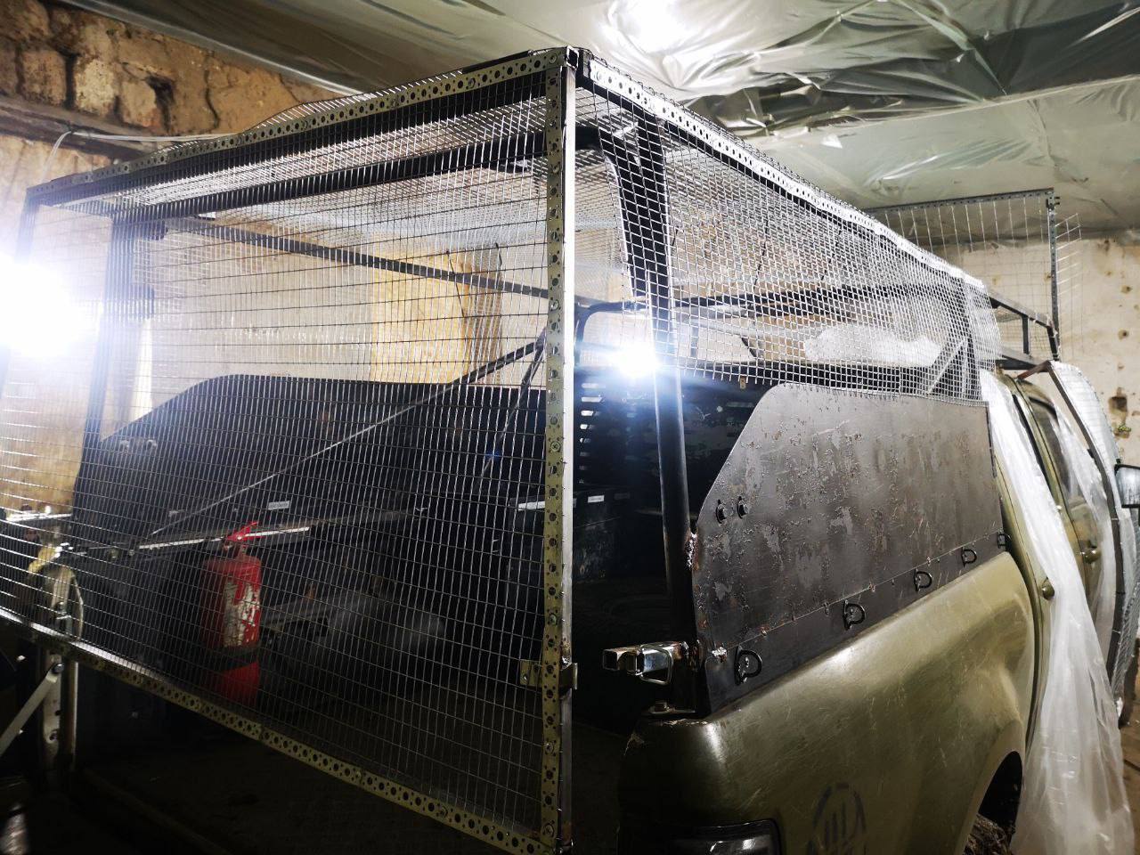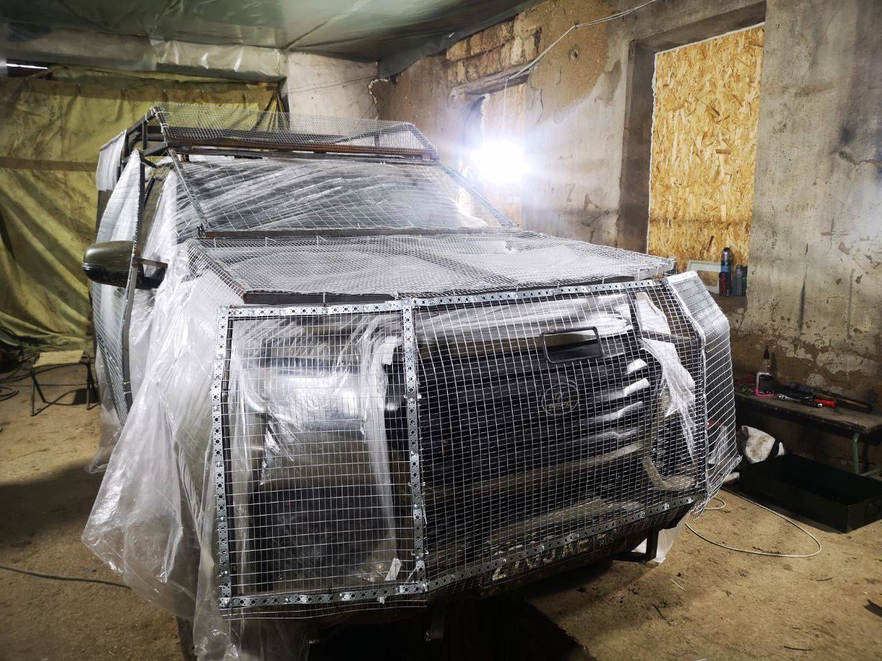Тем временем россияне оборудуют защитой от беспилотников не только военную технику, но и используемые ими гражданские автомобили. На фотографиях, которые публикует канал russia no context, показан пикап, защищенный противодроновыми сетками.