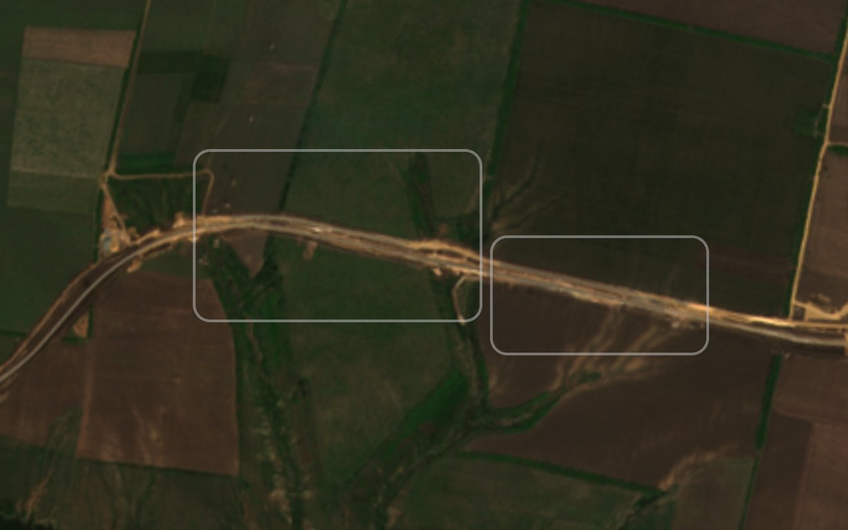 На оккупированной территории Донецкой области продолжается строительство железнодорожной ветки на Мариуполь, которое видно на спутниковых снимках. При этом, хотя на отдельных участках началась укладка второй колеи, на одном из перегонов имеется разрыв вообще без рельсов, поэтому новая железная дорога пока не готова к приему поездов.