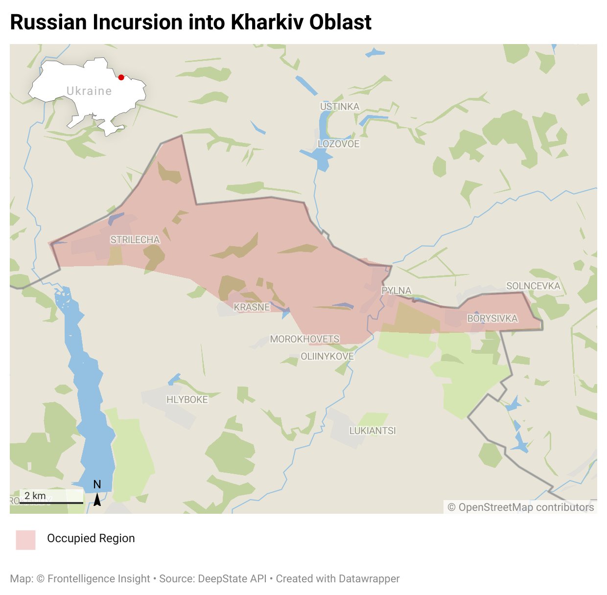 Украинский военный журналист Юрий Бутусов пишет, что россияне действительно смогли захватить четыре приграничных населенных пункта: Стрелечья, Красное, Пыльная и Борисовка. Общая площадь потерянной территории — более 30 кв. км. Бутусов подчеркивает, что эти села де-факто находились в «серой зоне», так как ИФС перед ними не было. Взятие поселка Стрелечья подтверждает «военкор» Владимир Романов. Он также пишет о захвате села Гатище.