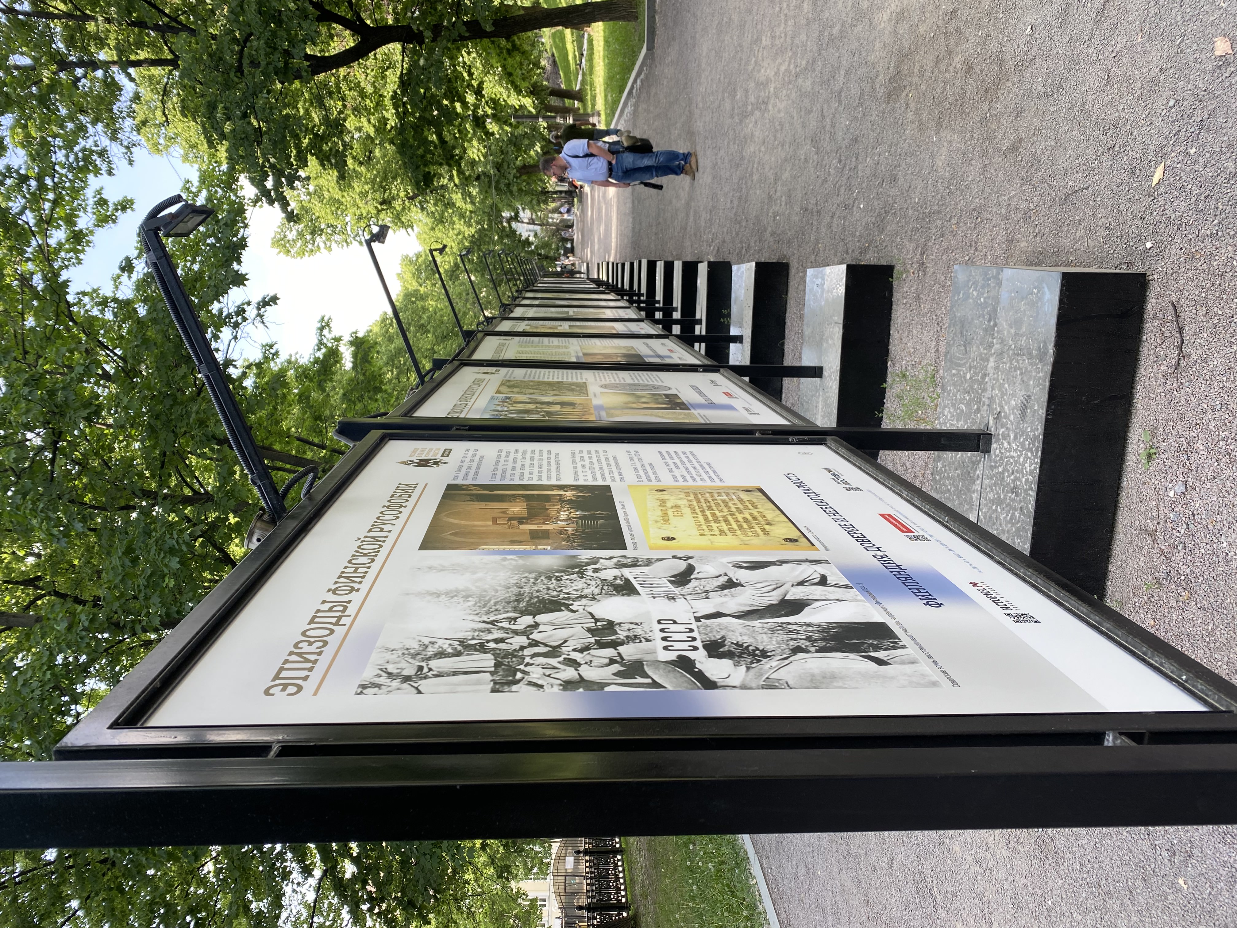 Выставка расположена сразу в трех местах: напротив посольства Финляндии в Кропоткинском переулке, по дороге от посольства к метро «Парк Культуры» на Остоженке и на Гоголевском бульваре. Текст на 16 стендах содержит множество орфографических и пунктуационных ошибок. В материалах делается акцент на том, что именно в составе России Финляндия обрела государственность и независимость, при этом именно «по вине финской стороны за первую половину ХХ в. наши страны, имели 4 вооруженных конфликта» (пунктуация и орфография авторов здесь и далее сохранены).