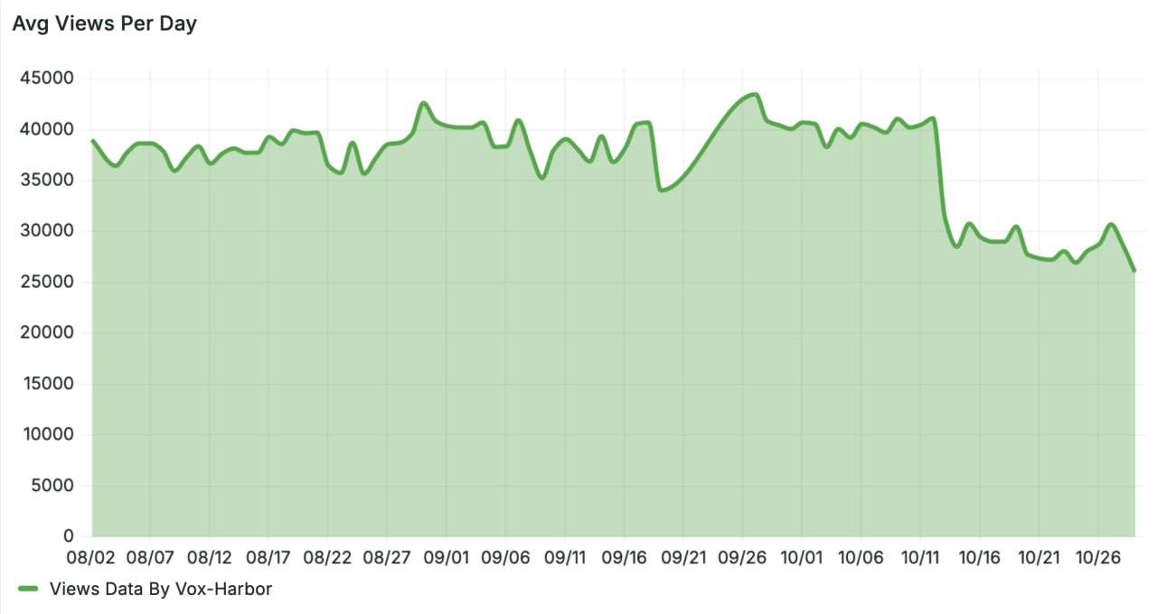 Эксперты проекта Vox-Harbor изучили для The Insider статистику крупных дагестанских Telegram-каналов и обнаружили, что количество просмотров за день в них с 11 октября упало в среднем примерно на 25%.