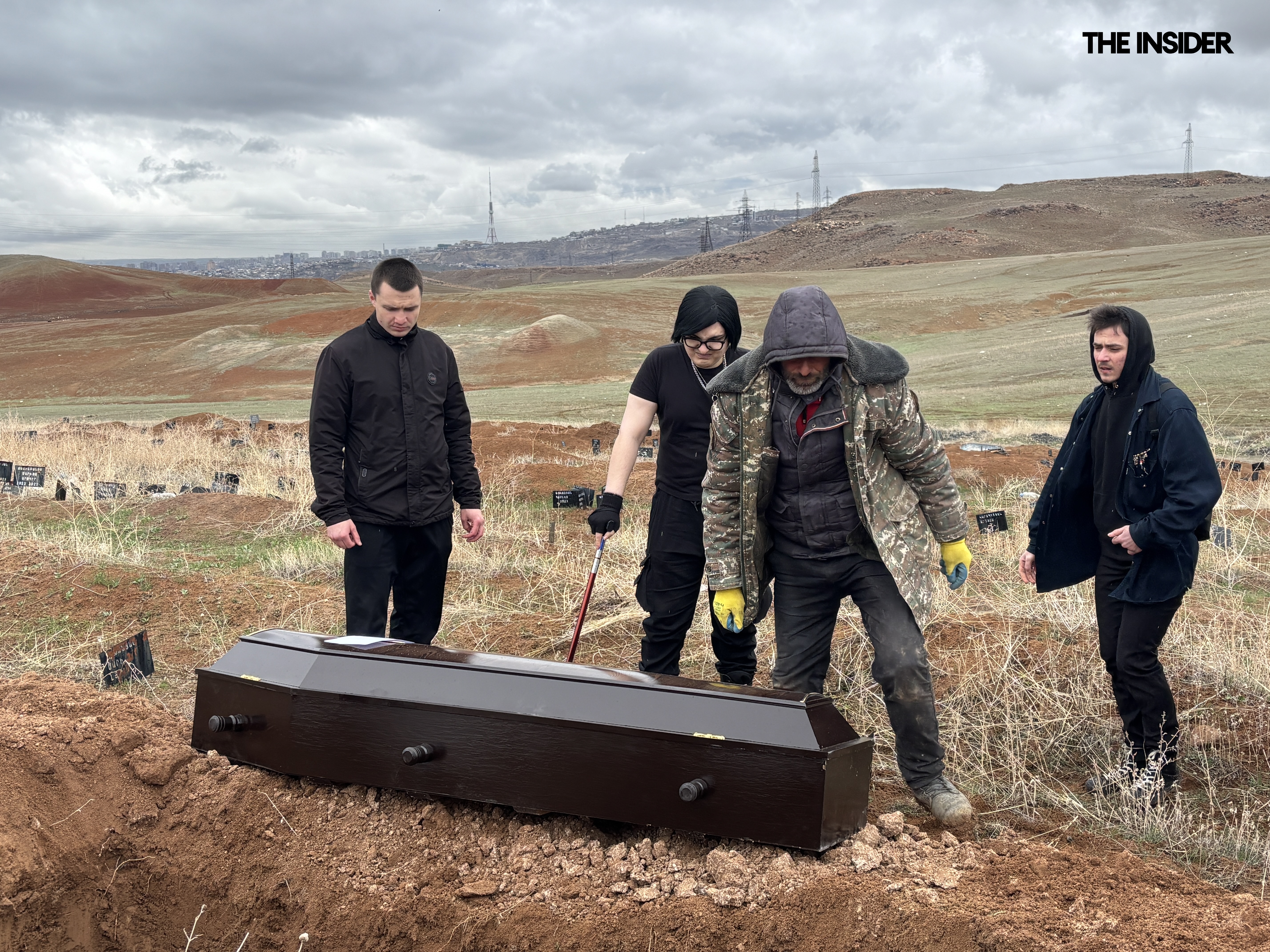 У морга собрались несколько десятков человек. По данным корреспондента The Insider, гроб вынесли мужчины в черном, предположительно сотрудники ритуальных служб, и сразу погрузили его в автомобиль. Это происходило на заднем дворе, поэтому присутствующие могли наблюдать происходящее только издалека.